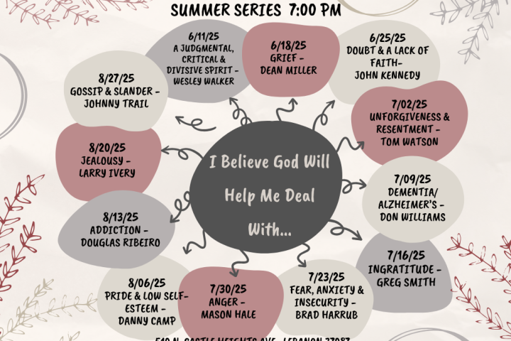 Past Events Aug 27, 2025 Summer Series: I Believe God Will Help Me Deal With . . . Jun 1 – 5, 2025 2025 Vacation Bible School 6:00 pm – 8:00 pm Jun 9 – 13, 2024 Vacation Bible School: The Name of Jesus 6:00 pm – 8:00 pm Click/tap here to register